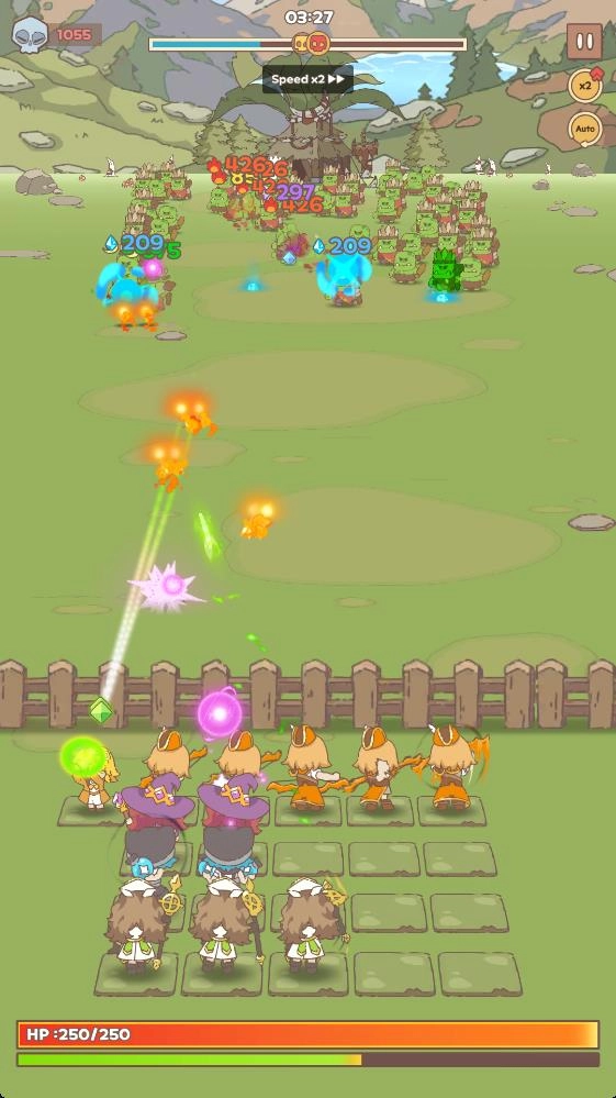 3、一旦有敌人出现,英雄便会自动展开攻击。当成功击败敌人后,会掉落经验宝石,只需点击屏幕,即可将其拾取。