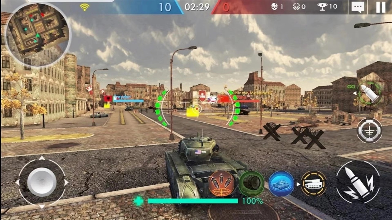 3. 防御操作:玩家可借助坦克的装甲、烟雾弹等防御方式,增强坦克的生存能力。