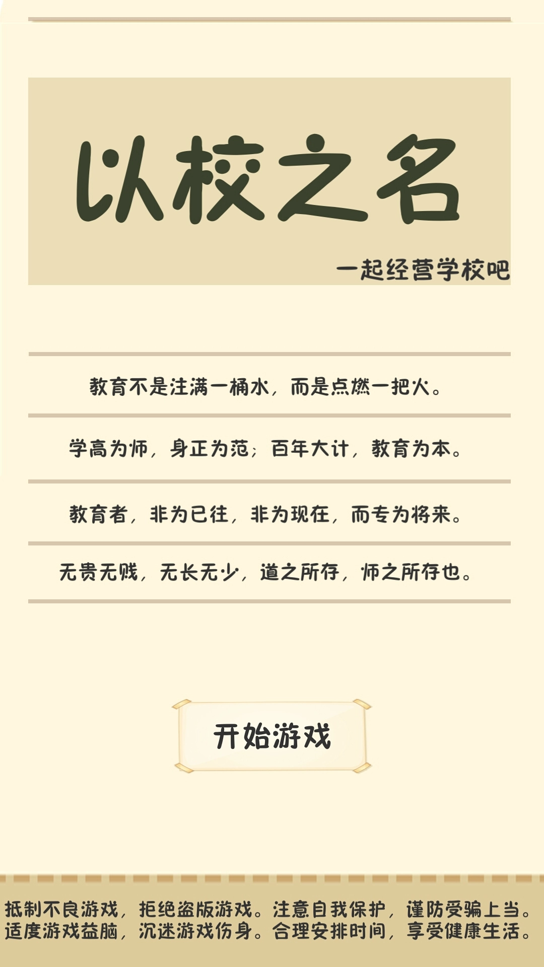《以校之名》属于模拟经营类游戏,在游戏里,玩家会扮演校长,负责运营一所学校。无论是建设校园、招聘教师,还是管理学生,又或是制定教育计划、安排活动等,都离不开玩家的用心规划与执行。该游戏通过真实模拟学校经营流程,使玩家感受到学校经营过程中的挑战与乐趣。