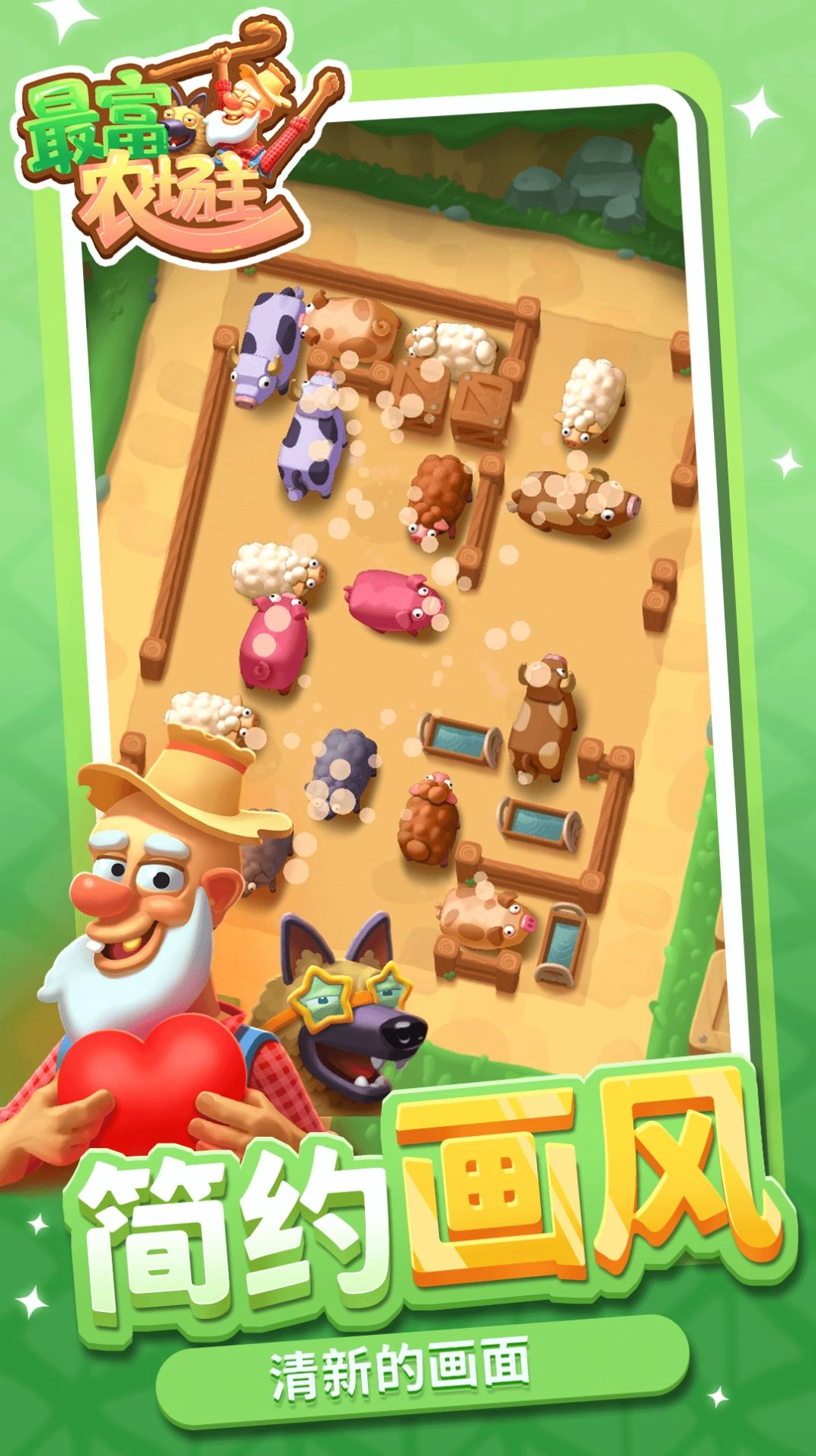 《最富农场主》是一款围绕农场经营展开的模拟经营类手机游戏。玩家在游戏里会扮演农场主,打理专属于自己的农场,感受种植作物与养殖畜牧带来的乐趣,还能借助各类小游戏和挑战获取金钱,进而解锁更多珍稀的植物与动物。