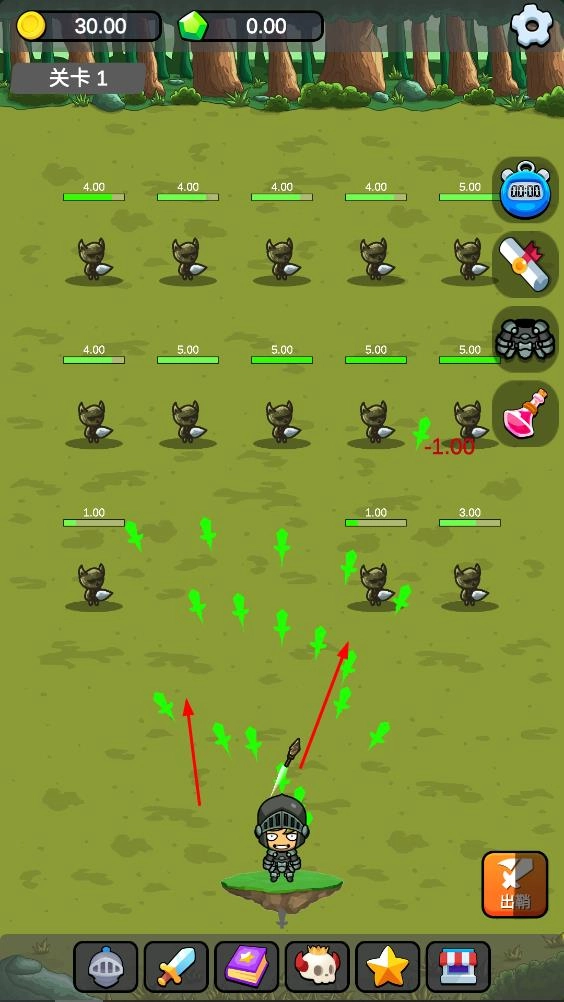 1. 在关卡里,轻点屏幕即可发射攻击,当攻击命中敌人,就能将其打败,与此同时,还可获取金币,从而推动关卡战斗的进程。