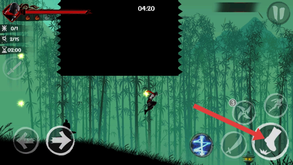 1. 当进入竹林场景后,通过操控左侧方向键让角色灵活移动,以此躲避敌人从各个方向发动的攻击。能够迅速向左或向右移动,从而躲开敌人下落攻击的范围。