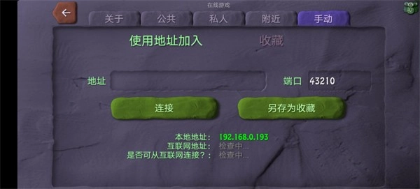 4、最后,也能够通过手动输入地址的方式实现远程联机。
