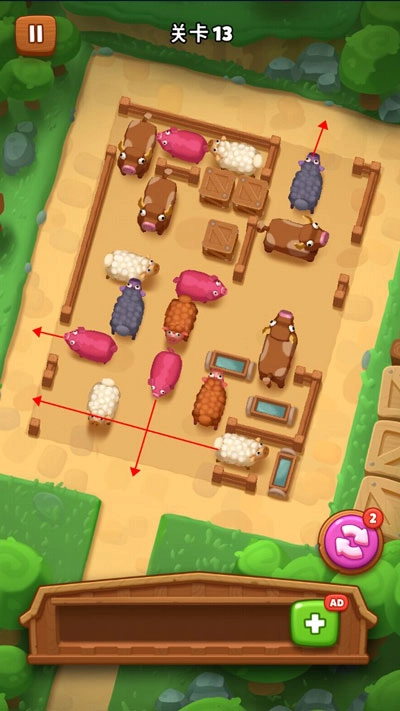 詹姆农场中文版(Farm Jam)是一款轻松有趣的休闲游戏,它以可爱的卡通农场画风为背景,能让玩家在游戏里体验种植农作物的乐趣。这款游戏的玩法与华容道类似,玩家要帮助动物们摆脱困境。具体操作是通过移动木块,把两个相同的动物放置在相邻位置,进而消除它们,以此为其他动物腾出逃脱的空间。