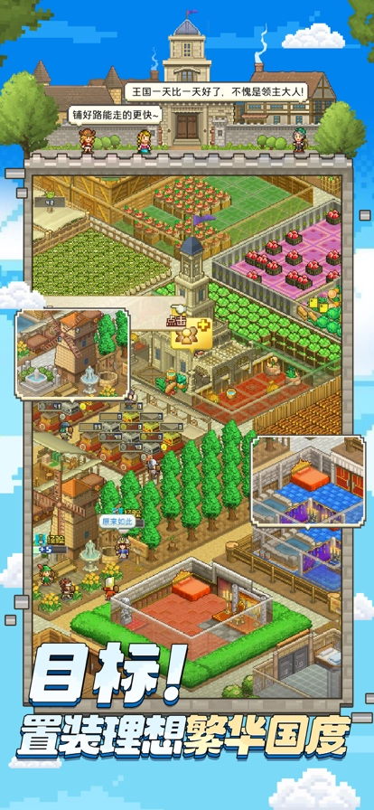 《王都创世录》是一款趣味十足的模拟管理类游戏,其采用了大众熟知的像素美术风格。在这款游戏里,玩家将化身为一个王国的开创者。尽管初始的国家一无所有,但玩家能够凭借自身的规划与布局,打造出王国的首都。玩家还能够派遣形形色色的小人为自己效力,以此积累经验,持续发展并升级自己的岛屿、治疗站、购物中心、建筑等设施,构建专属于自己的王国。