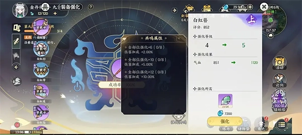 3、装备:分解金丹装备能够获得强化石,通过不断强化逐步做出共鸣效果。