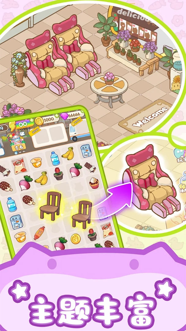 这是一款模拟经营游戏,打造出极具治愈感的游戏氛围,给予玩家身临其境般的游戏体验。在游戏里,有着琳琅满目的物品,像零食、化妆品、日用品之类,这些物品能够合成升级,使玩家尽情领略丰富多样的合成乐趣。玩家不仅能自由尝试挑战不同的消除合成内容,感受游戏的趣味所在,还能够购进各类商品进行售卖。