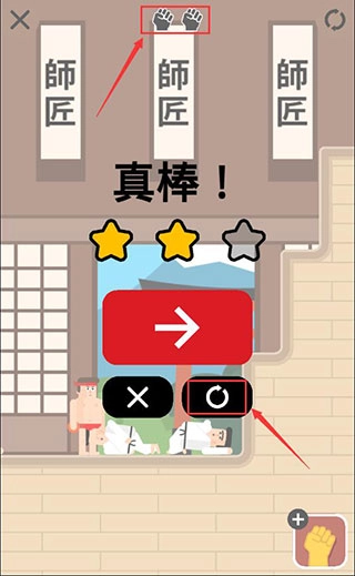 1当你进入游戏关卡,能瞧见屏幕上方存在6个拳头标识,它们之中,有3个是黑色拳头,另外3个为黄色拳头。黑色拳头会对通关评分产生影响,黄色拳头则不会被纳入评分考量。