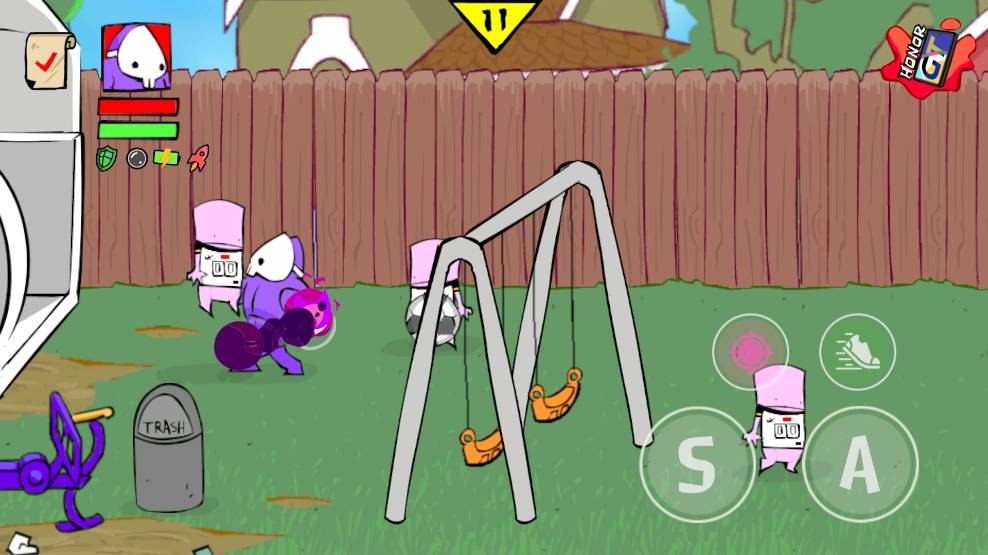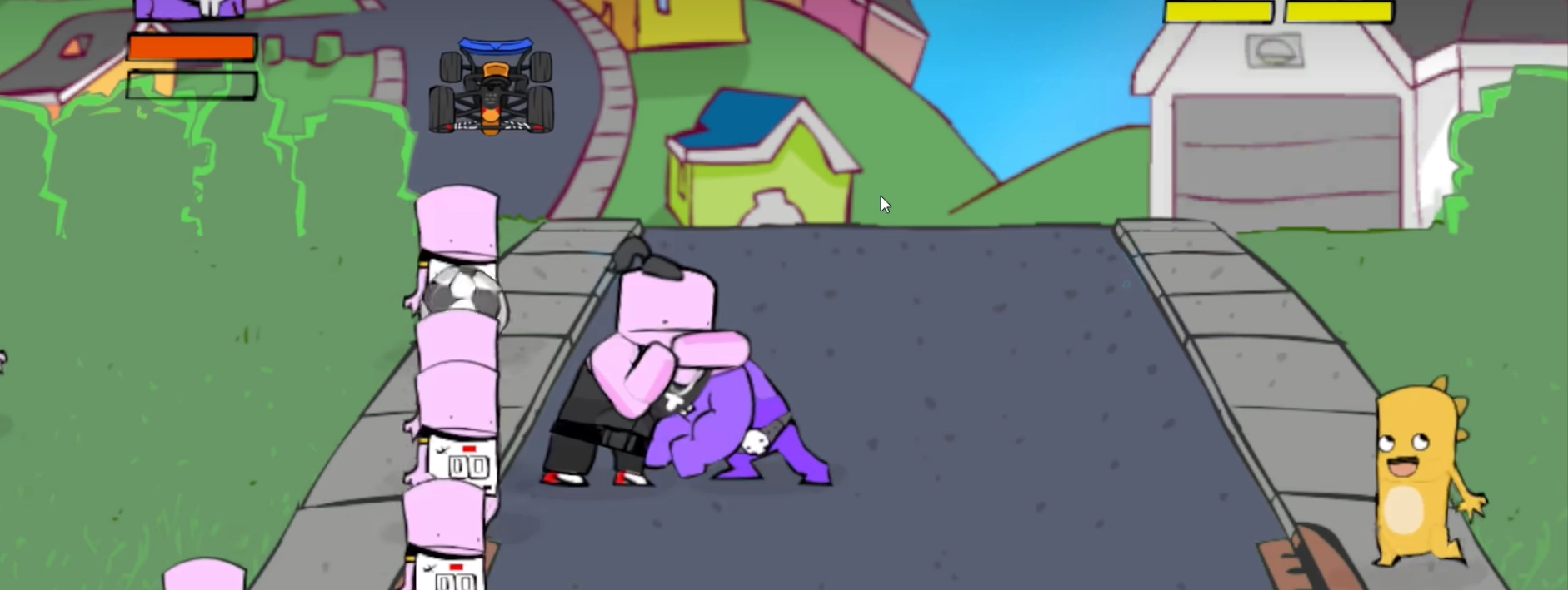 在赛车道上,要留意躲避两位正在开车的小朋友,防止被他们的车撞到。使用篮球或者足球去攻击车辆,能够直接把车摧毁,然而单纯甩拳的话,起到的效果不太显著。要是你想尝试冒险,当车靠近时可以用拳头击打,这样虽然会有一定效果,但同时也存在着一定的危险性。