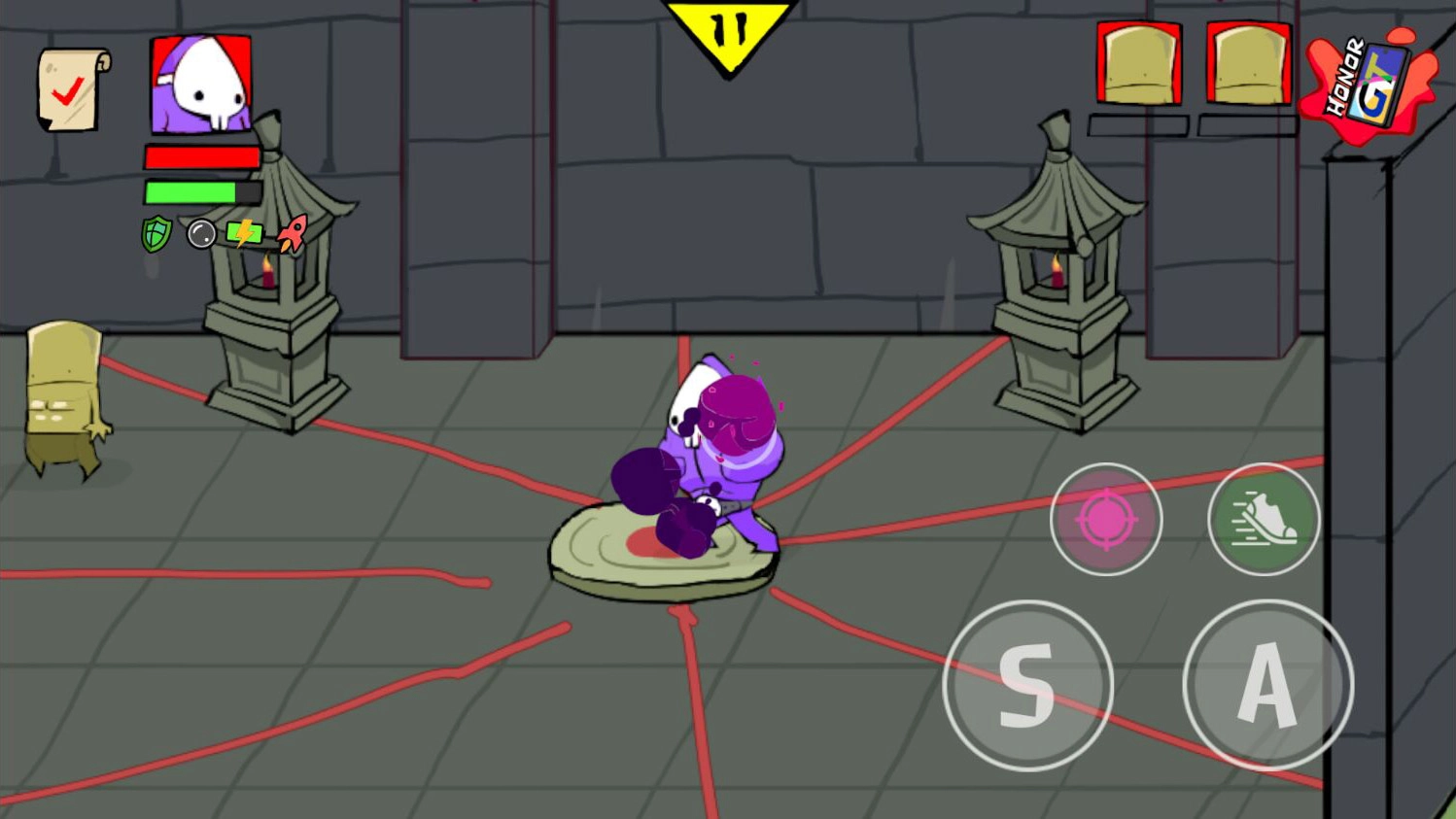 踩踏攻击:敌人倒地后,站在其身上按下A键(或S键)