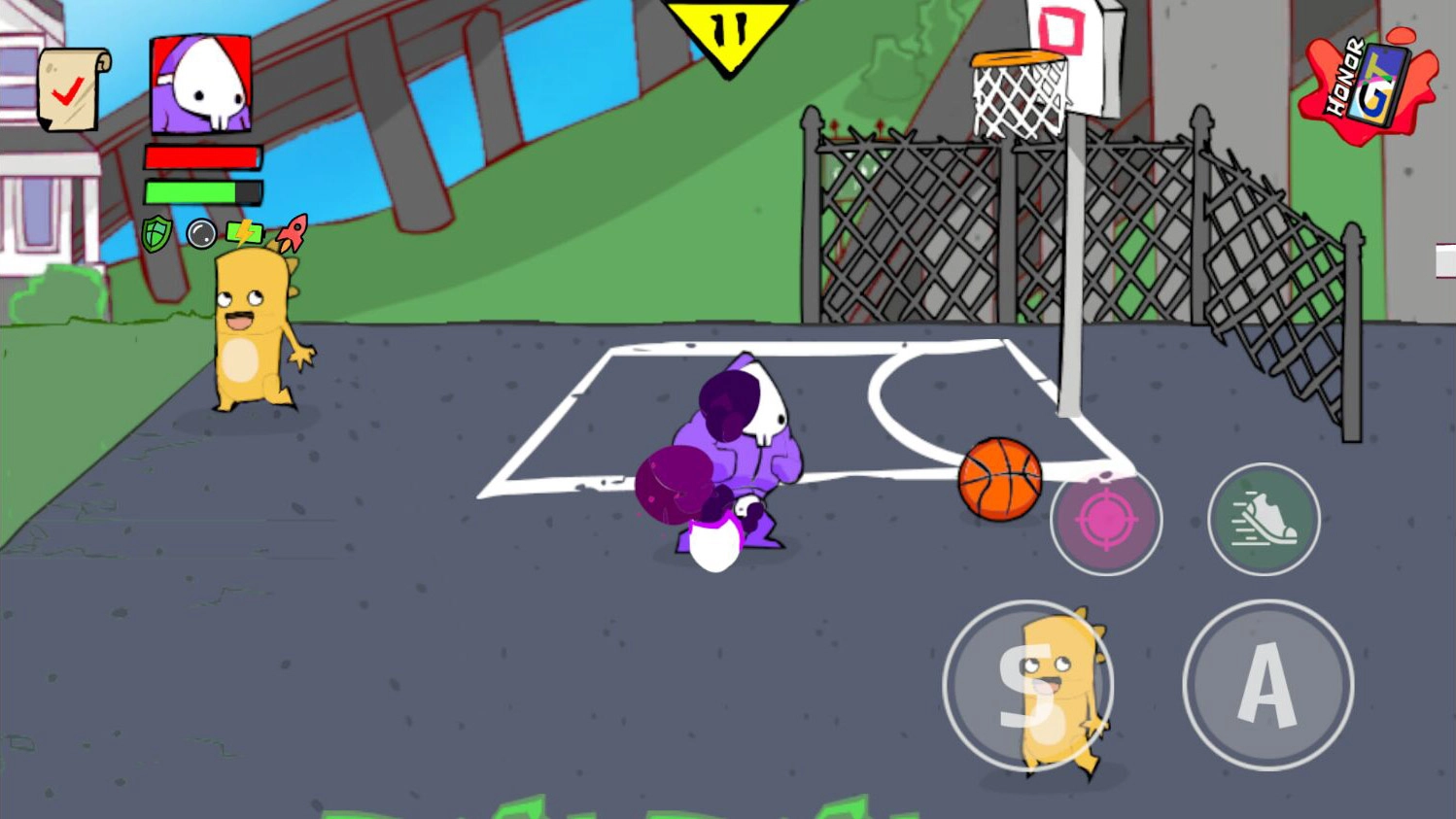 在篮球场上,有些小朋友会用篮球砸人。此时,你可以试着在球篮下,同时按住轻拳键与方向键来投篮,这个动作既幽默又有趣。另外,一定要记得拍着篮球前进,这一操作在后续关卡或许能发挥作用。同样的道理,利用足球进行干扰也是可行的办法。