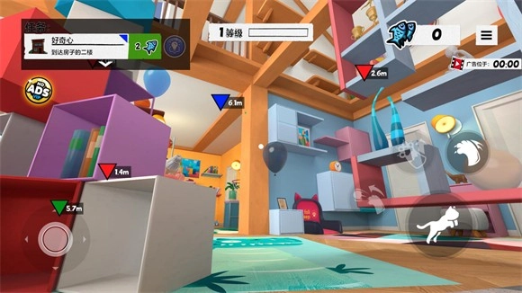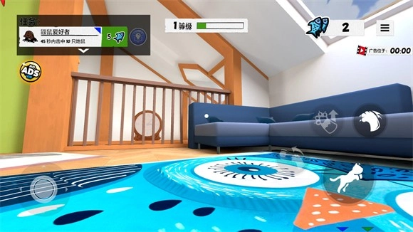 自由行动:借助屏幕左侧的虚拟摇杆,操控猫咪在房间里自由穿梭,探索各个不同区域。