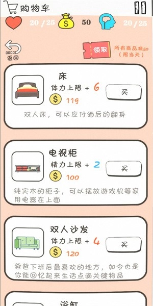 这是一款独具特色的休闲小游戏,在游戏里,玩家将以自身的角色设定,于繁华又复杂的城市中努力求存,挣着那微薄的“窝囊费”,维持着自己看似苟延残喘实则顽强的生活。不管每天过得如何,总归一句话,只要能好好活着,便已足够。