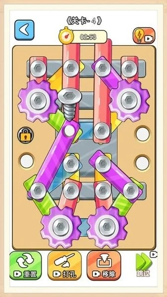 玩了个锤子旗下的《打螺丝达人》手机版游戏,玩家要准确地扭螺丝与打螺丝。游戏内关卡众多,其中玩家还得把杂乱的绳结按颜色连接、摆放,保证线不交叉,只有每个螺丝都打到正确位置才能顺利过关。