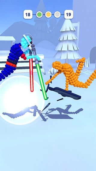 当点击“进攻”按钮后,小人会手持武器,以预先摆好的姿势与对手展开决斗。在决斗过程中,武器先触碰到对方的那一方,将赢得游戏的胜利。