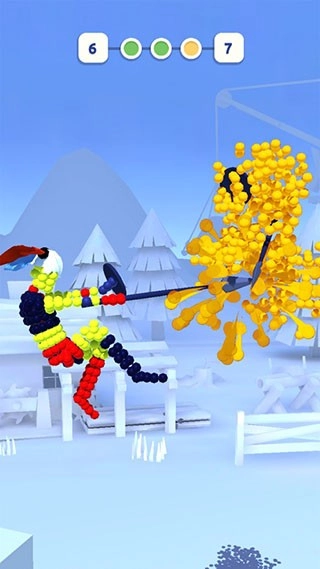 在游戏里,玩家操控一个小人,可通过点击按钮挑选武器,还能借助拖动来变换小人的姿势。
