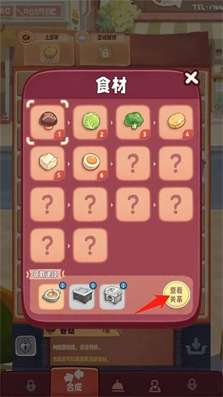 2. 点击之后,便能进入食材详细界面,接着点击选择【查看关系】这一选项。