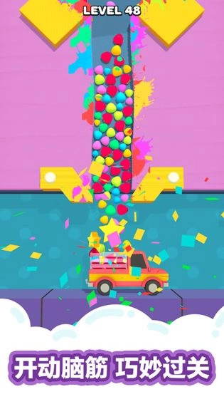 1、玩家在游戏里,要凭借灵活的手指操控,把各类彩球从起始点引领至目标卡车。