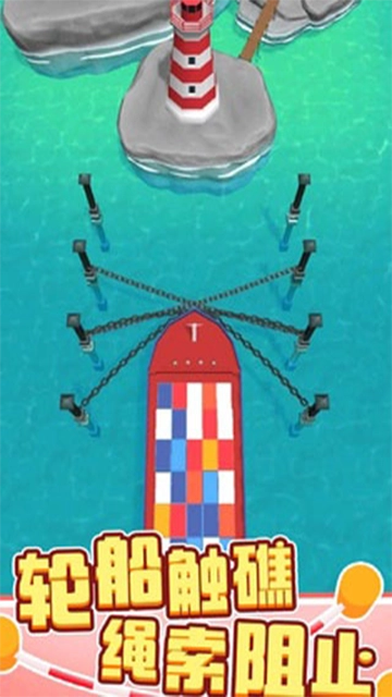 1、《一线生机3D》手机版的玩法极为简单,玩家的任务在于通过将绳索打结,以此来阻拦那些失控的交通工具。