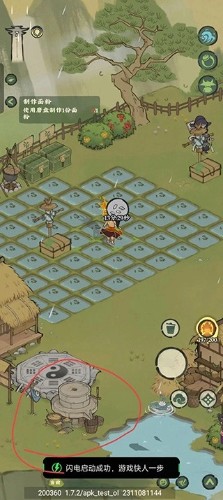 1. 走向磨盘,与之进行交互操作,进而开启道具制作流程。