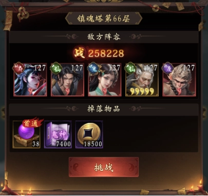 镇魂塔堪称获取突破丹的不二之选,在此迎接挑战,海量突破丹将纷至沓来,助力你在鬼神培养之路上一路顺遂,彻底摆脱等级限制的困扰。不仅如此,成功挑战镇魂塔,还能收获相当可观的鬼神经验与铜币,这些资源可是鬼神成长不可或缺的关键要素。倘若每日在挑战镇魂塔时,遭遇难以攻克的层数,不妨启用扫荡功能,轻松领取奖励。