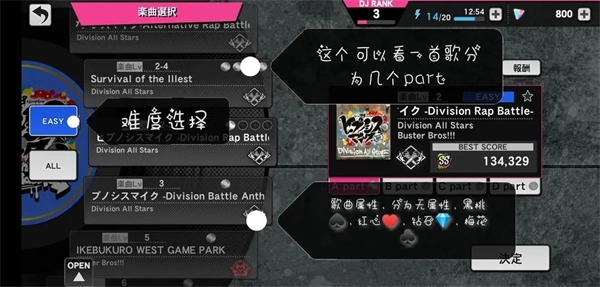 进入这里后,呈现的便是选歌界面。