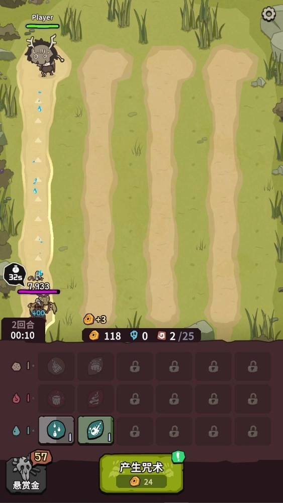 3、三个相同的咒术能够合体升级,进而转变为更强大的咒术,以此增强战斗能力。