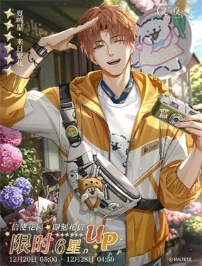 活动说明:花语含情,爱意无尽。偶然间收到来自蓝星的信件,打开一看,居然是一封贴满可爱小狗图案的邀请函。接受小狗们的邀约,和夏鸣星一起前往多格镇,担任 DOGARDEN 店为期一周的代理店长吧!参与此次活动,就能体验专属剧情,还可获得活动限定的 [3 星]灵犀 夏鸣星・馥郁留声,以及专属聊天气泡、朋友圈封面等丰厚奖励。