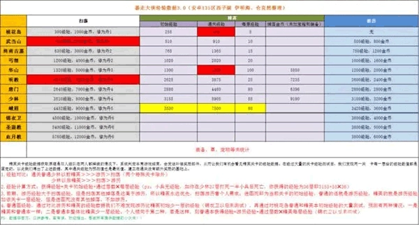 当然,打算前往华山刷宠物的玩家不在此列。对于那些渴望快速升级的玩家而言,能够依据这两份表格,对自身状况进行估算,进而挑选适宜的地图来迅速获取经验。