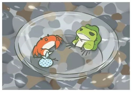 螃蟹似乎是个不善言辞的伙伴,唯有坐在碗中随波逐流时,才显得较为开心。带着碗的话,更容易遇见螃蟹。然而遗憾的是,小编的青蛙与螃蟹并没有太多接触。