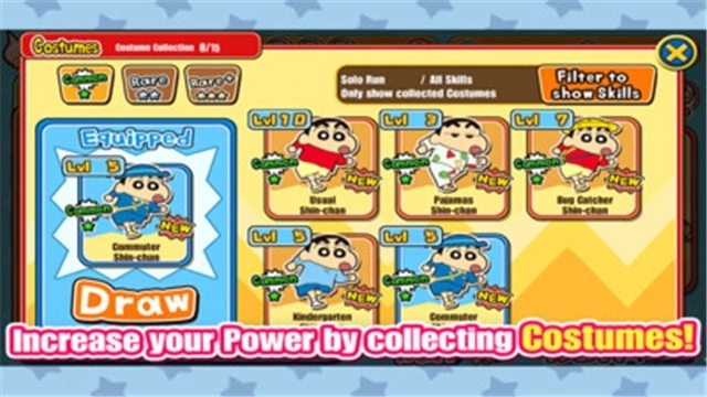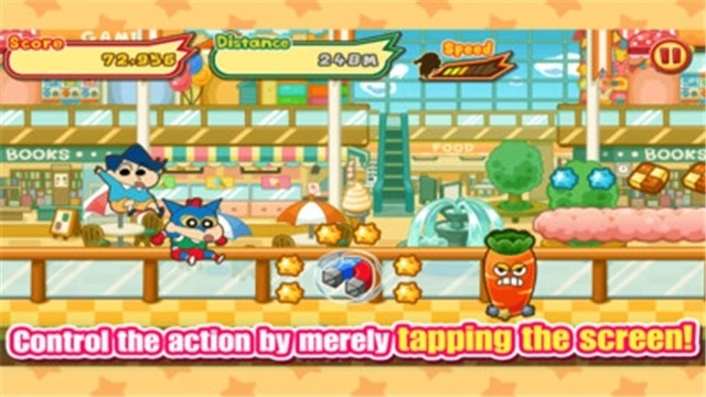 2. 由动画改编而来的游戏,能让玩家更多地回味童年。玩家仅需动动手指,就能躲避障碍物,收集小新最爱的蜡笔。