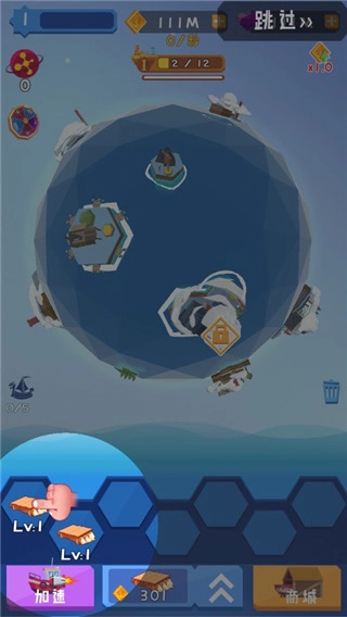 游戏玩法为:借助造船操作,依据两两合成的规则打造出等级更高的船只,然后把这些船只放置于球形地图里来获取收益。