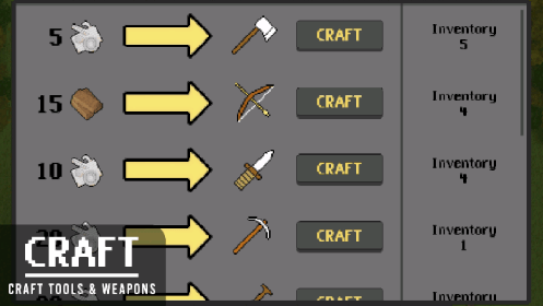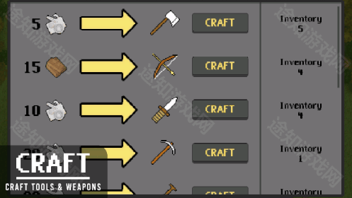 6、玩家也能够收集材料,用以制作斧头、弓箭、匕首等武器,从而进行狩猎与防守。