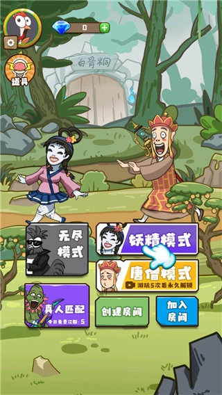 5个白骨精一同出手,试图捉拿唐僧,哪想到唐僧武力惊人,竟将一众妖怪打伤。白骨精们实在没办法,只好逃窜至附近的洞穴之中,赶忙召唤同伴来抵御唐僧的攻势,同时争分夺秒打造月光宝盒,期望借此逃离困境。