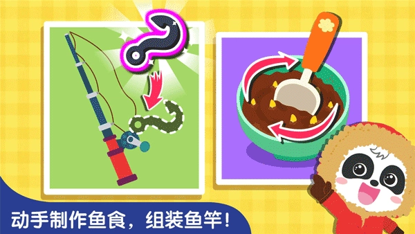 快来试试专为宝宝量身定制的钓鱼竿、捞鱼勺和捕渔网这三种工具吧!