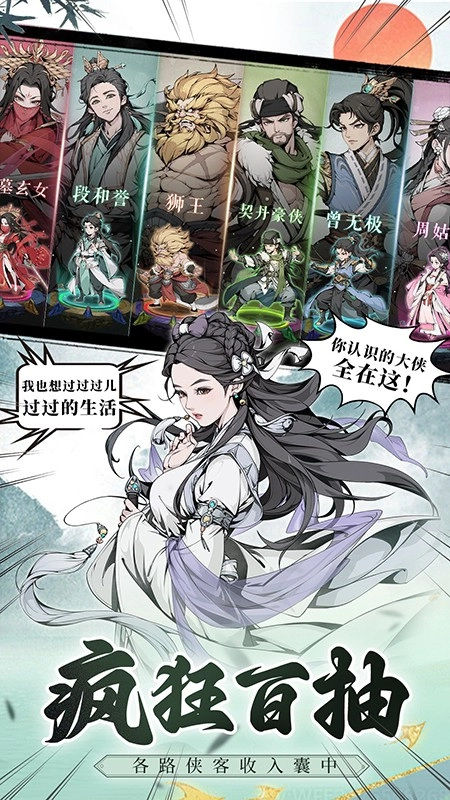 以中国古代武侠江湖为背景题材,玩家可收集更多角色,解锁策略性战斗。