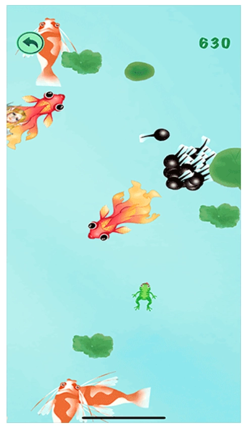 4、进入游戏即可开始游玩,初始形态为小蝌蚪,随后会进化成青蛙。游戏遵循“大鱼吃小鱼,小鱼吃虾米”的规则,成功获取食物后,便能加速进化。游戏内容既休闲又刺激。
