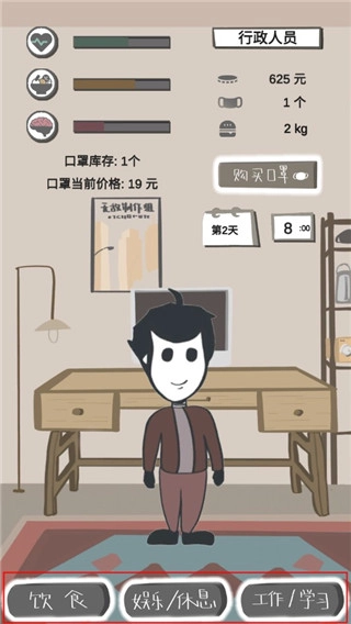 2、游戏中可供选择的日常活动较为丰富,并且涵盖了诸多细节。例如,出门进行活动会消耗口罩数量,物品价格也会随时间产生波动等等。