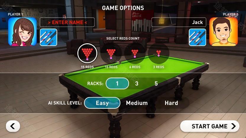 在顶级的斯诺克赛事里,向你的朋友以及人工智能玩家发起挑战。