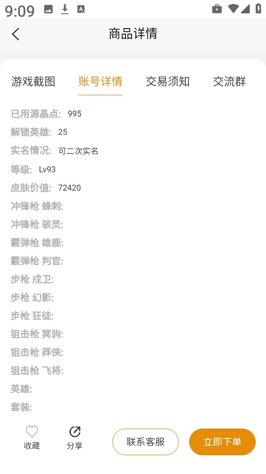 4、依据实际需求,在明确所需购买的游戏账号后,直接点击“立即下单”。