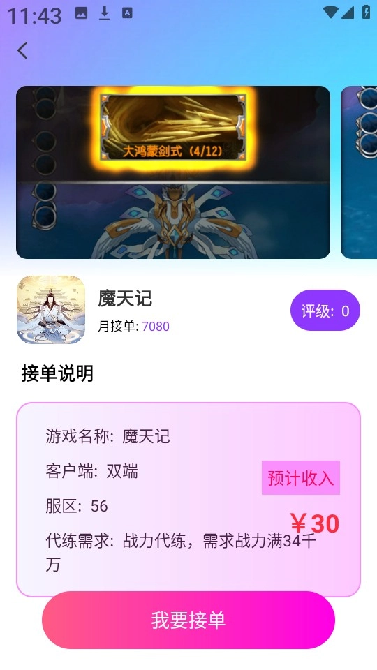 3、在此,小编以“魔天记”这款游戏来说明,只需直接点击“我要接单”就行。