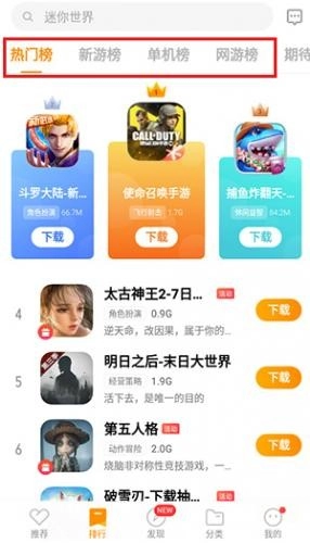 3、点击进入排行界面,这里设有热门榜、新游榜、单机版、网游榜等众多榜单,能够助力玩家更优地挑选游戏。