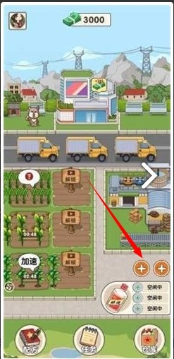 1. 来到游戏农场界面,注意屏幕右下角的【+】按钮,点击该按钮就能开启酿造等功能选项,丰富游戏的玩法。