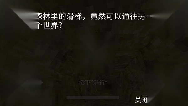 最初两次一切都还挺正常,然而到了第三次,游戏的发展方向发生了变化,画面逐渐变黑。好在玩家此前捡到了一个手电筒,这样就能够手持手电筒继续滑行。