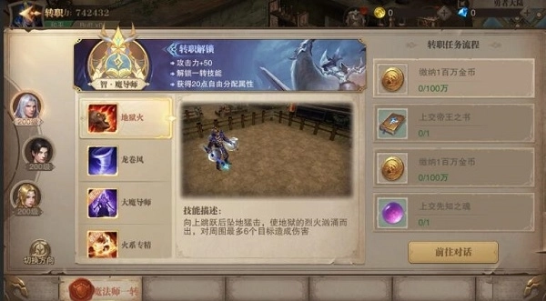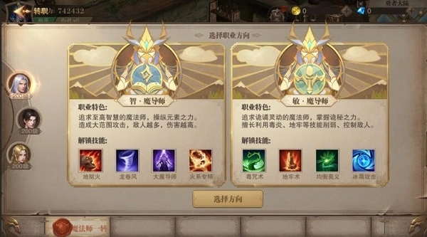 1当每个角色的等级达到特定标准时,便会面临当前职业的发展瓶颈,随即开启一转、二转以及三转的转职任务。