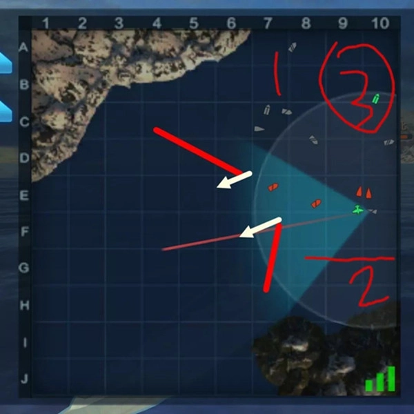 可参照陆奥打法,在15公里外将鱼雷发射完毕后便向后撤离(鉴于双潜艇攻击速度较快,巡洋舰若再加以定位,能打得更精准且迅速)。