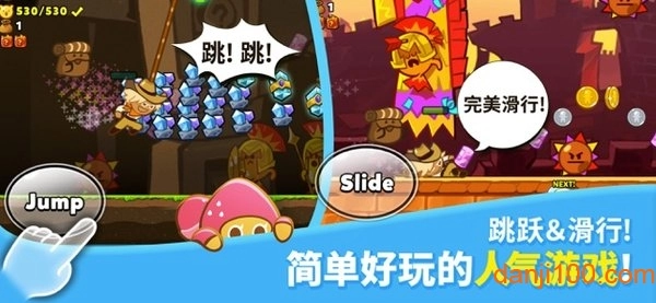 2. 极为经典的冒险跑酷题材,搭配特色专属的饼干宠物系统,玩家可通过收集钻石来升级属性。