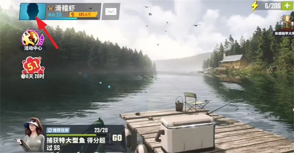 2、如图所示进入游戏后,点击右侧的“去钓鱼”。