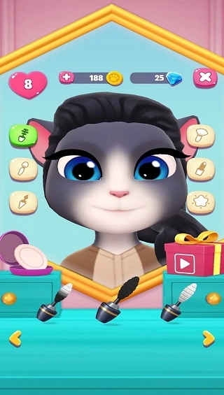 四、换装化妆板块 安吉拉也得美美的!除了日常梳毛,在化妆间里,我们能帮安吉拉涂口红、涂眼影、画眉毛。各类化妆品颜色与样式各异,借此打造安吉拉独一无二的风格。只有你想不到,没有游戏实现不了的。在游戏中,我们还能帮安吉拉变换肤色、更换发型,或是挑选日常服装,衣服款式丰富多样,总有一款合你心意。