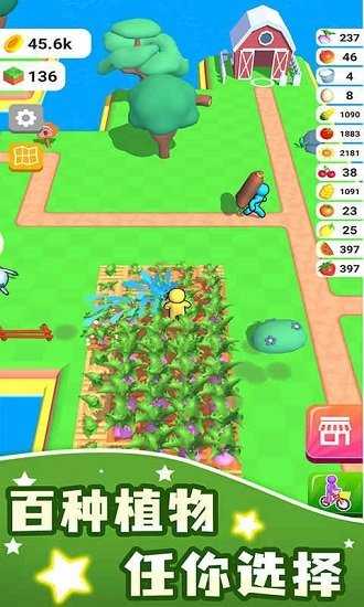 1这是一款十分休闲的小游戏,里面农作物的种类丰富多样,玩家拥有较大的选择空间。游戏的画风精致且清新,希望能多增添一些福利,要是能进一步加强玩家之间的互动就更棒了。